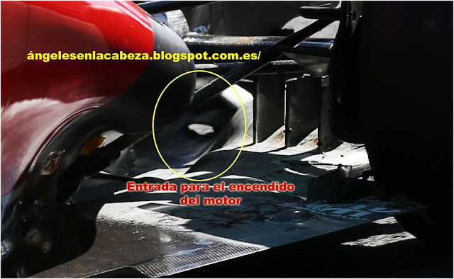 En ella se puede apreciar perfectamente lo trabajado del diseño del F138, muy despejada, donde se aprecian unos aletines que canalizan el flujo por todo el difusor trasero, son tes en cada lado pero sobre todo vemos que todo el aire que circula pegado al coche es conducido a la toma de encendido del motor que es utilizado para generar mucha carga. Muy interesante, ya se sabia que lo hacían el año pasado pero ahora se puede ver perfectamente. Ahora habrá que descubrir con que se alimenta el doble difusor, qué está situado un poco más arriba de éste.
